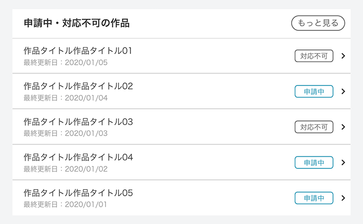 申請中・対応不可の作品について