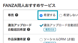 専売で作品登録、もしくは登録作品を専売に変更します。